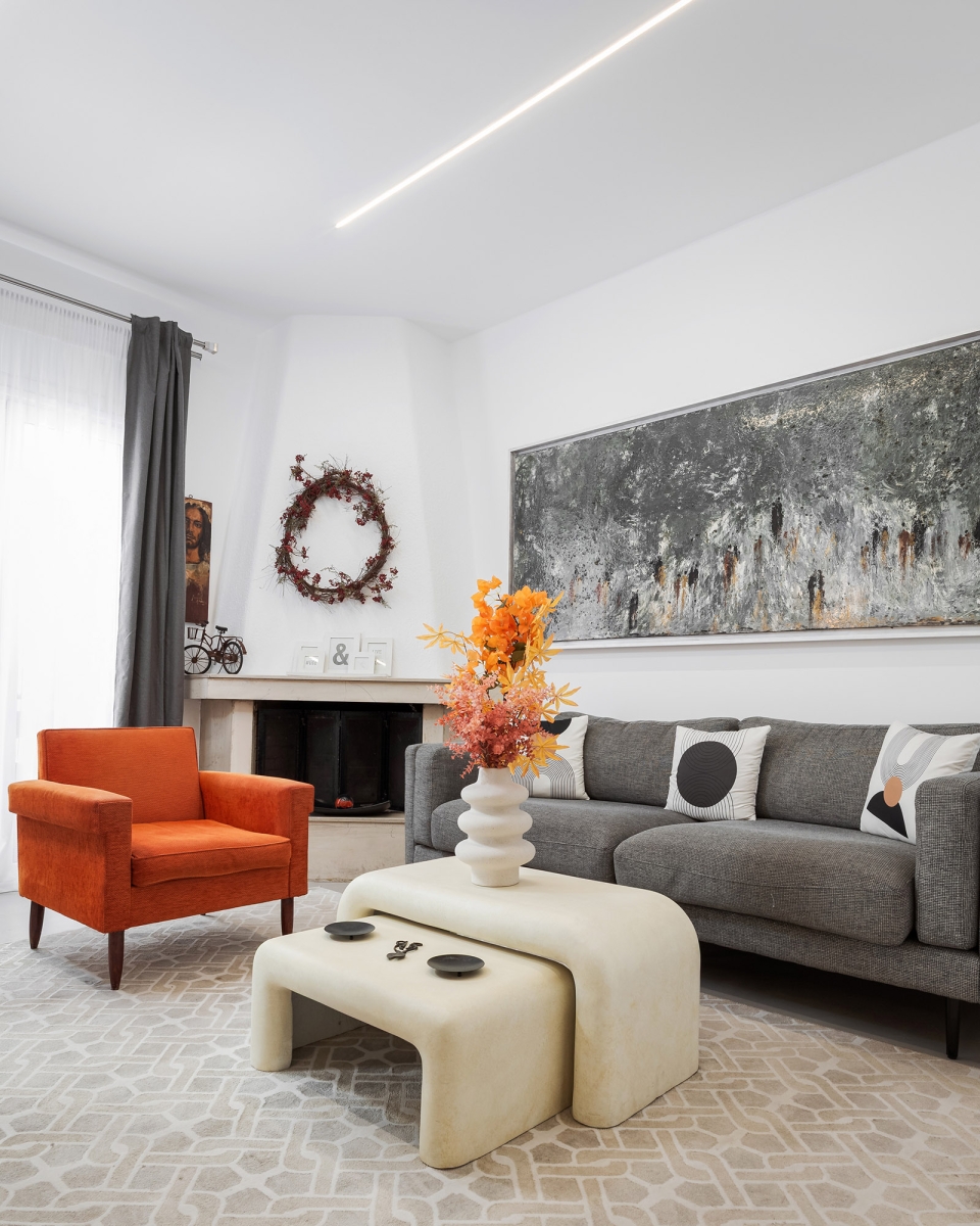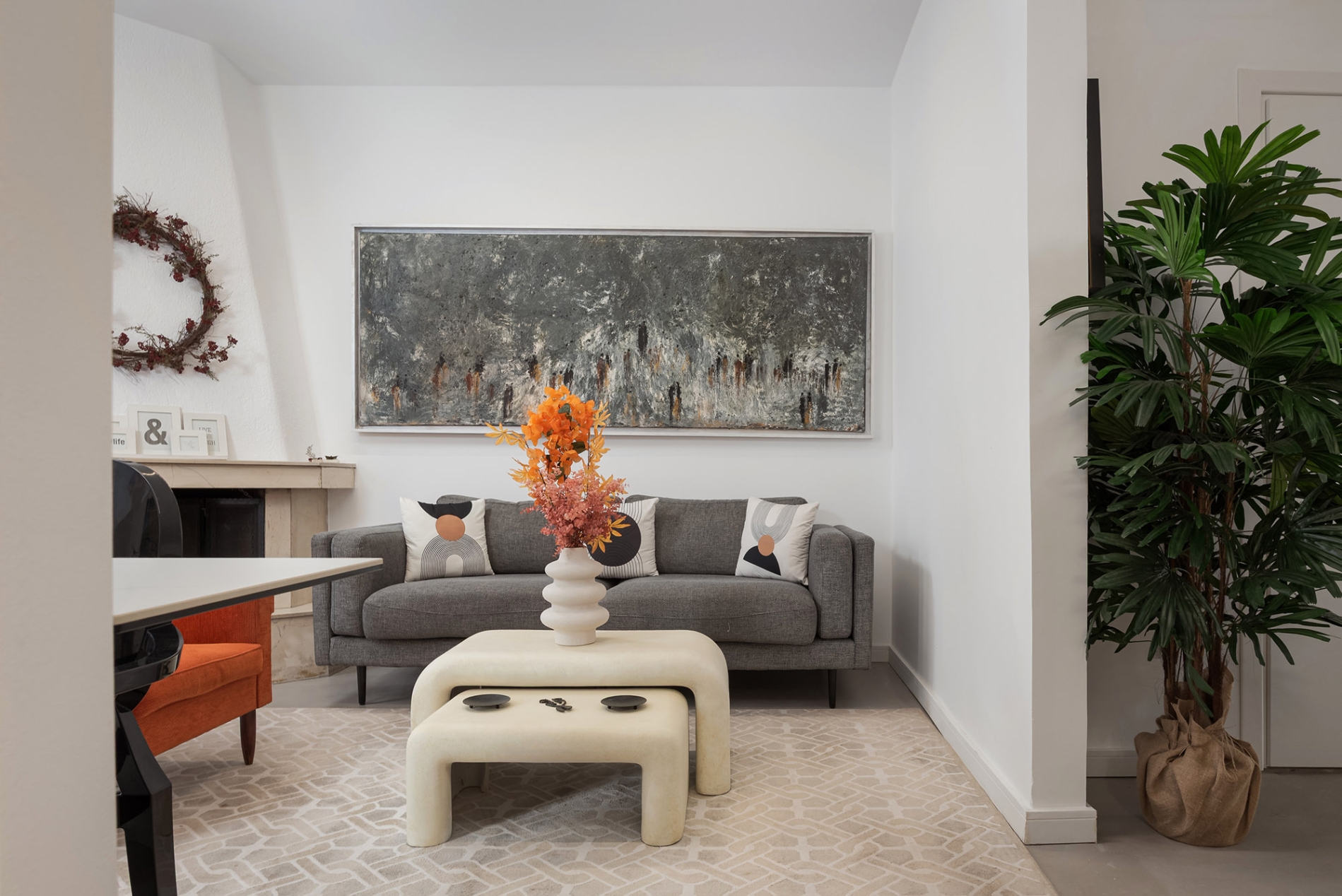 The fully equipped kitchen, artworks, and high-quality furnishings give the space character and warmth.