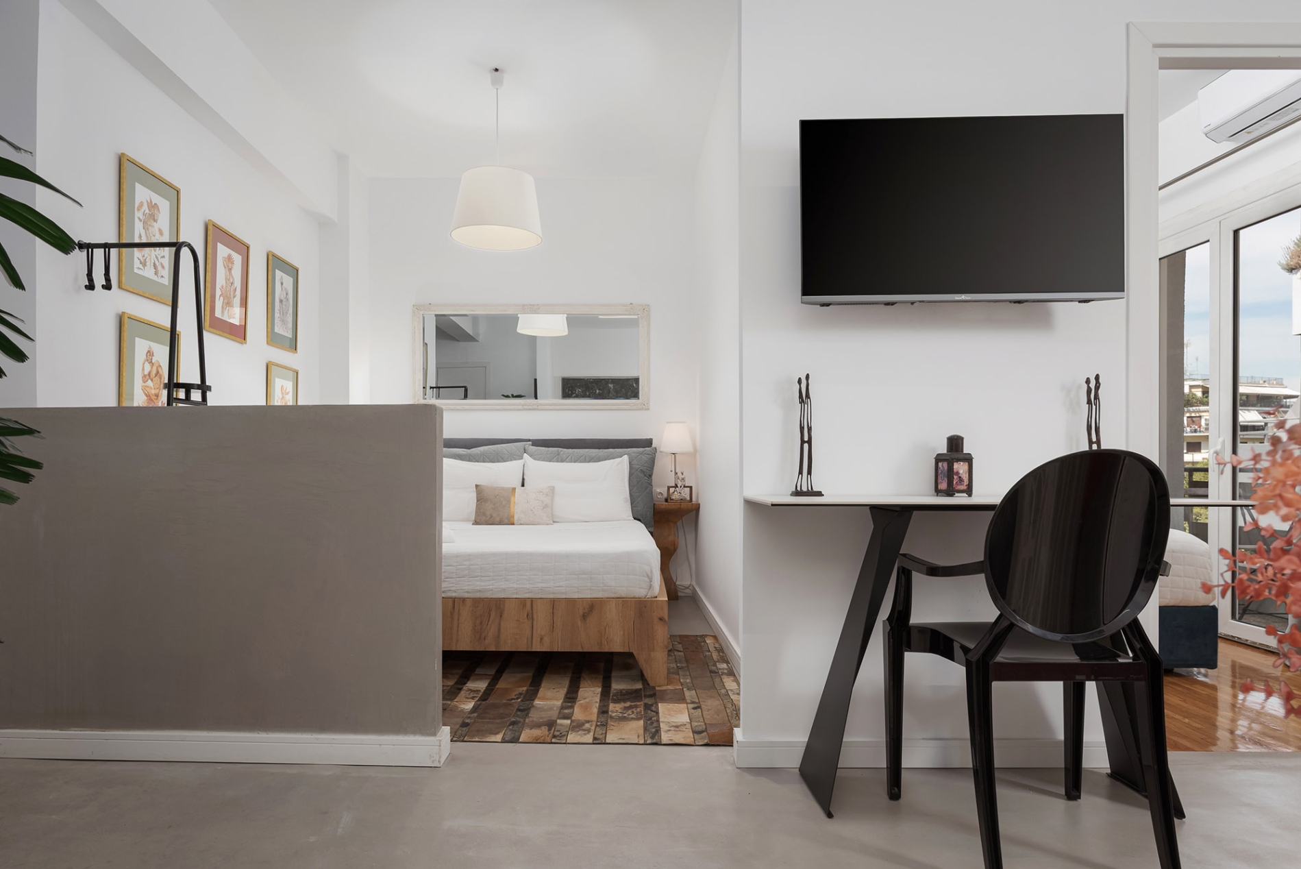 From the balcony with city views, guests can enjoy the authentic Athenian experience with all the comforts of a lux Our Apartments