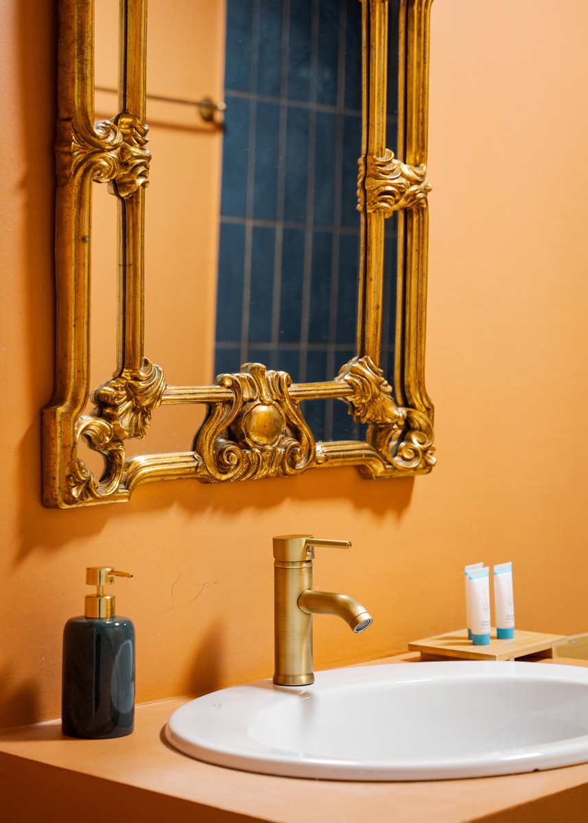 Its modern décor and statement furniture create a vibrant yet elegant atmosphere.