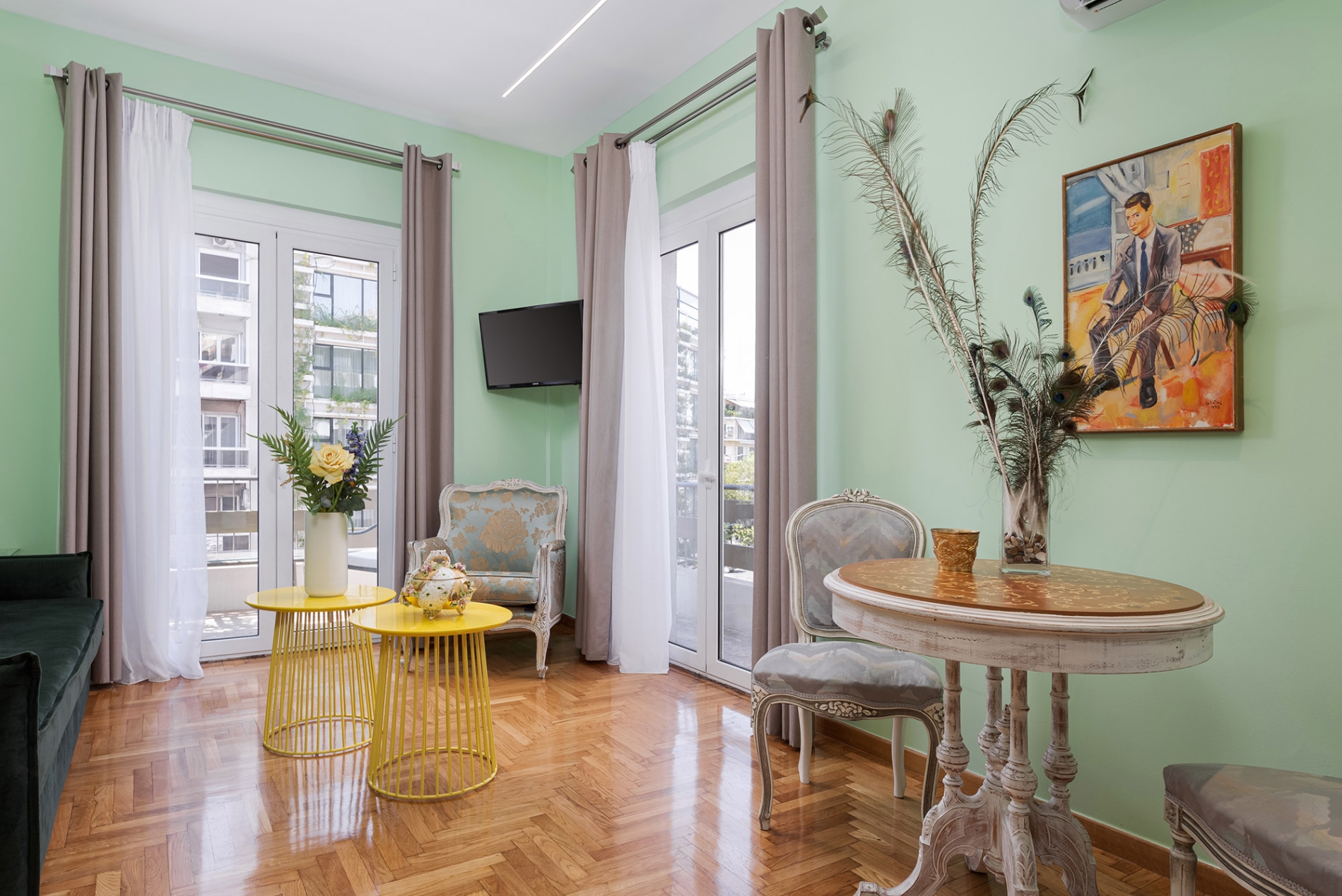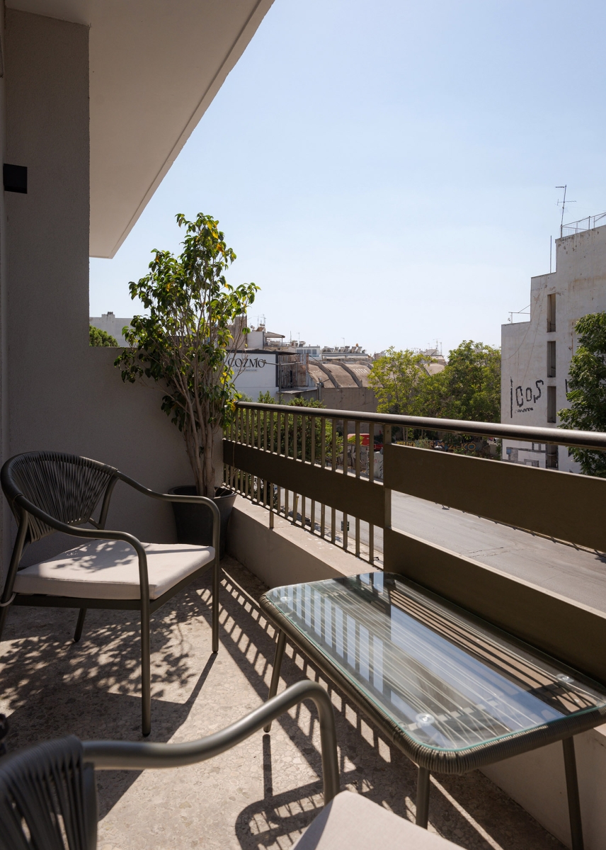 With a balcony overlooking the Temple of Olympian Zeus, the Hermes Apartment combines elegance, comfort, and urban energy in perfect harmony.