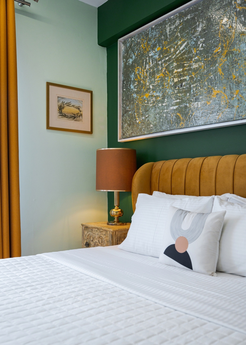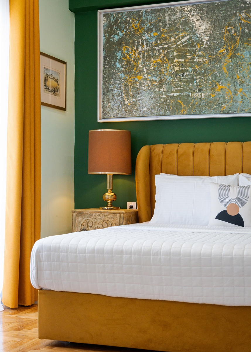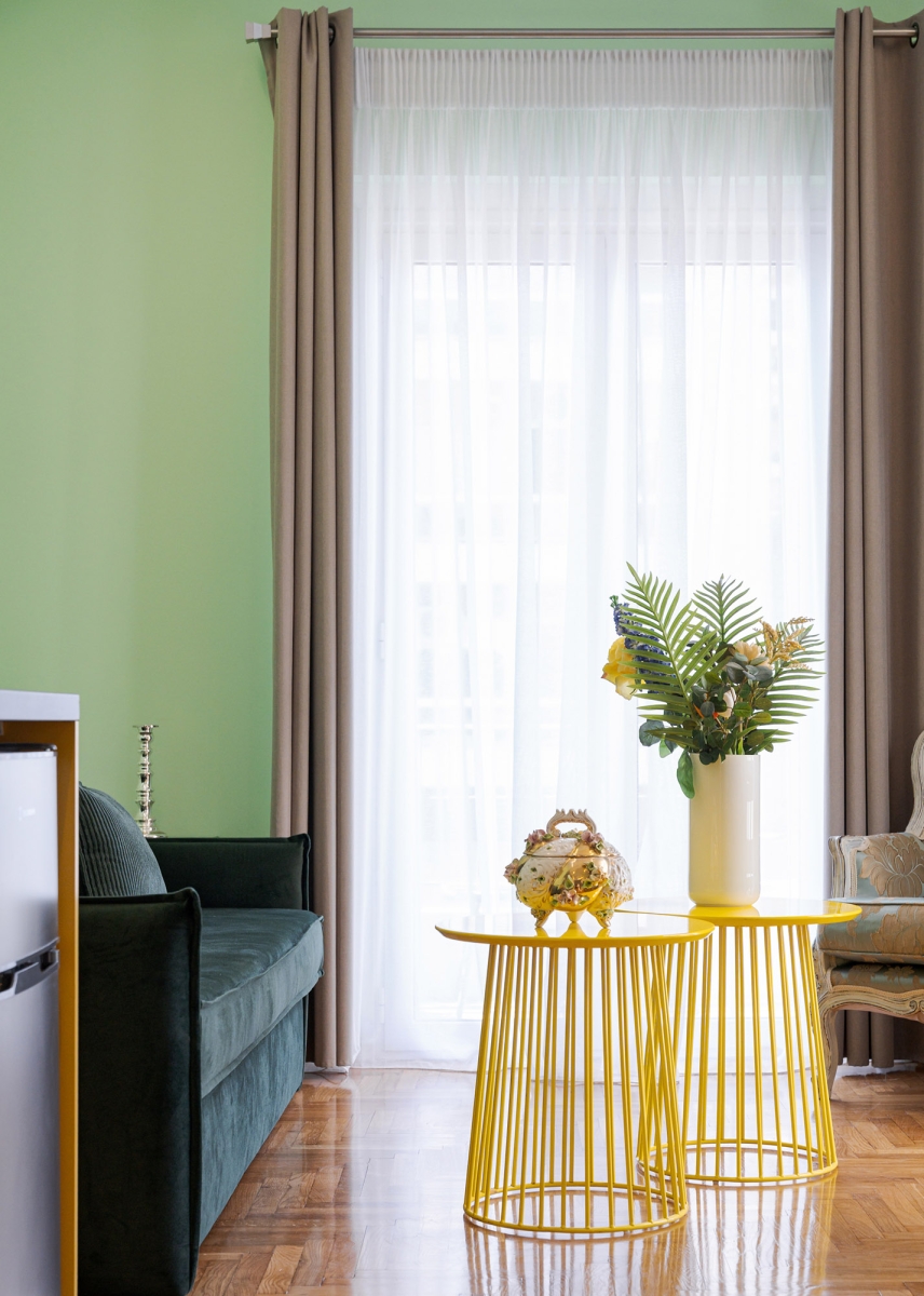 The Hermes City Apartment, covering 36 sq.m., radiates color, character, and contemporary charm.
