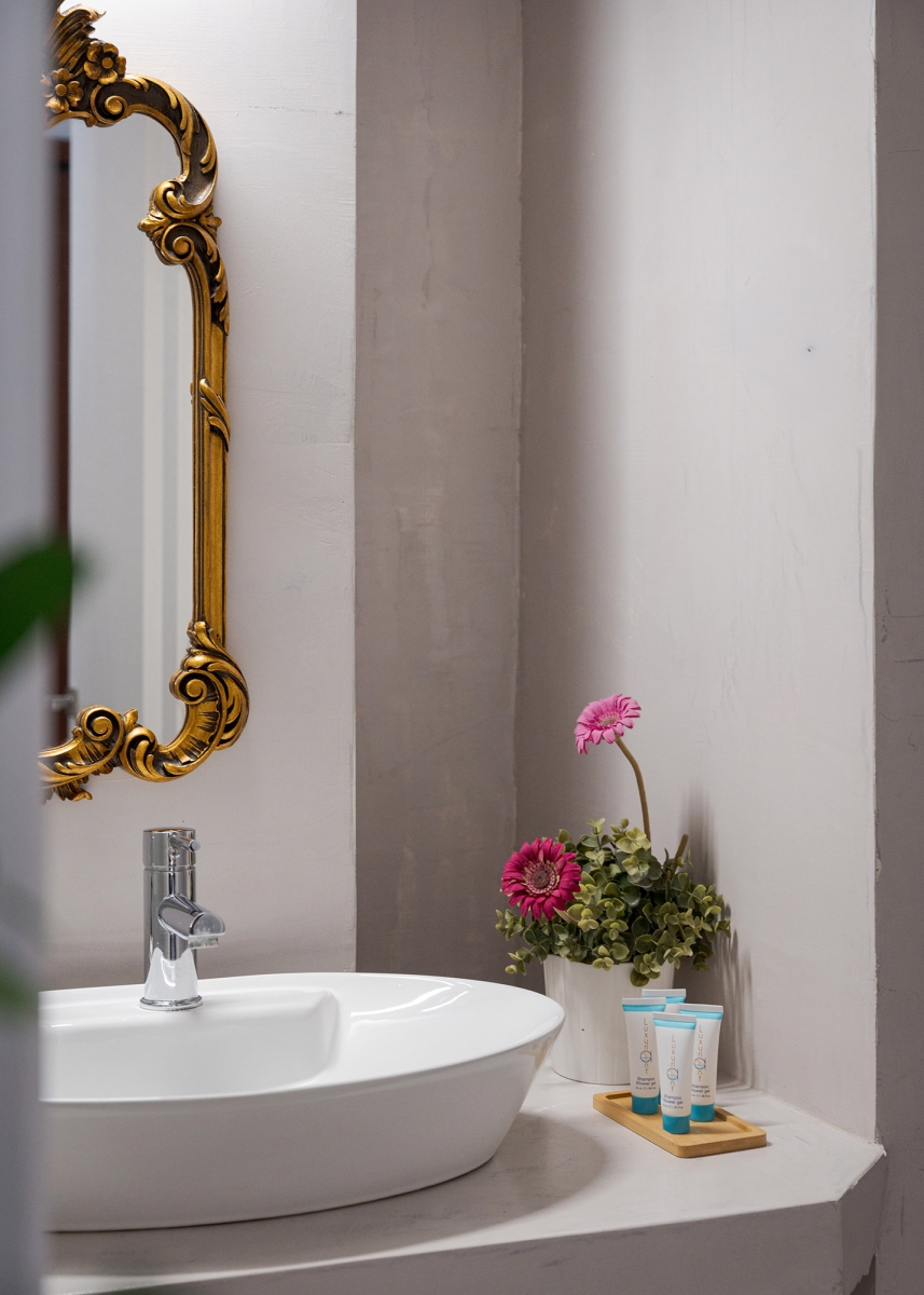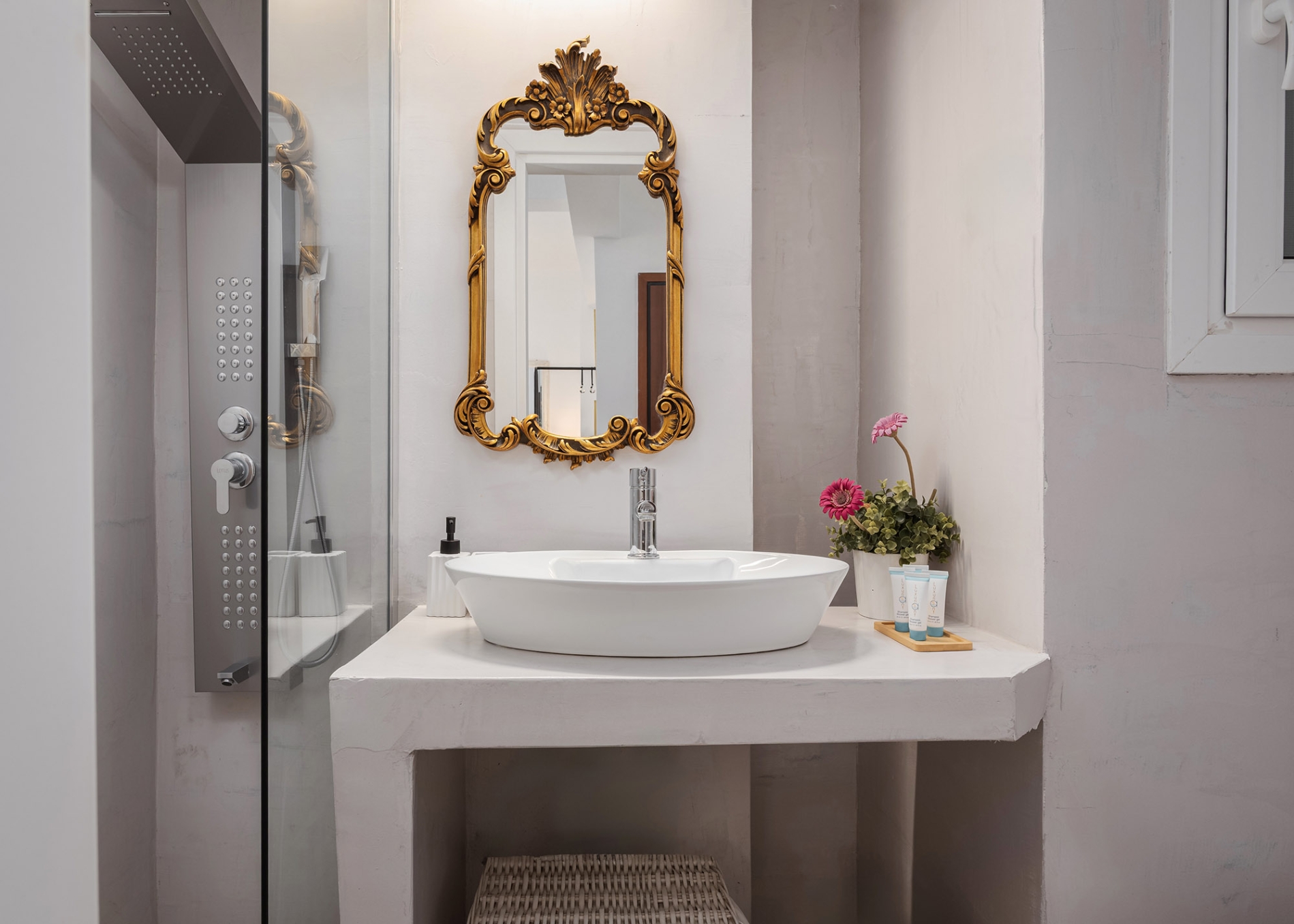 The modern bathroom, with its hydromassage system and sleek finishes, invites guests to unwind in total comfort.
