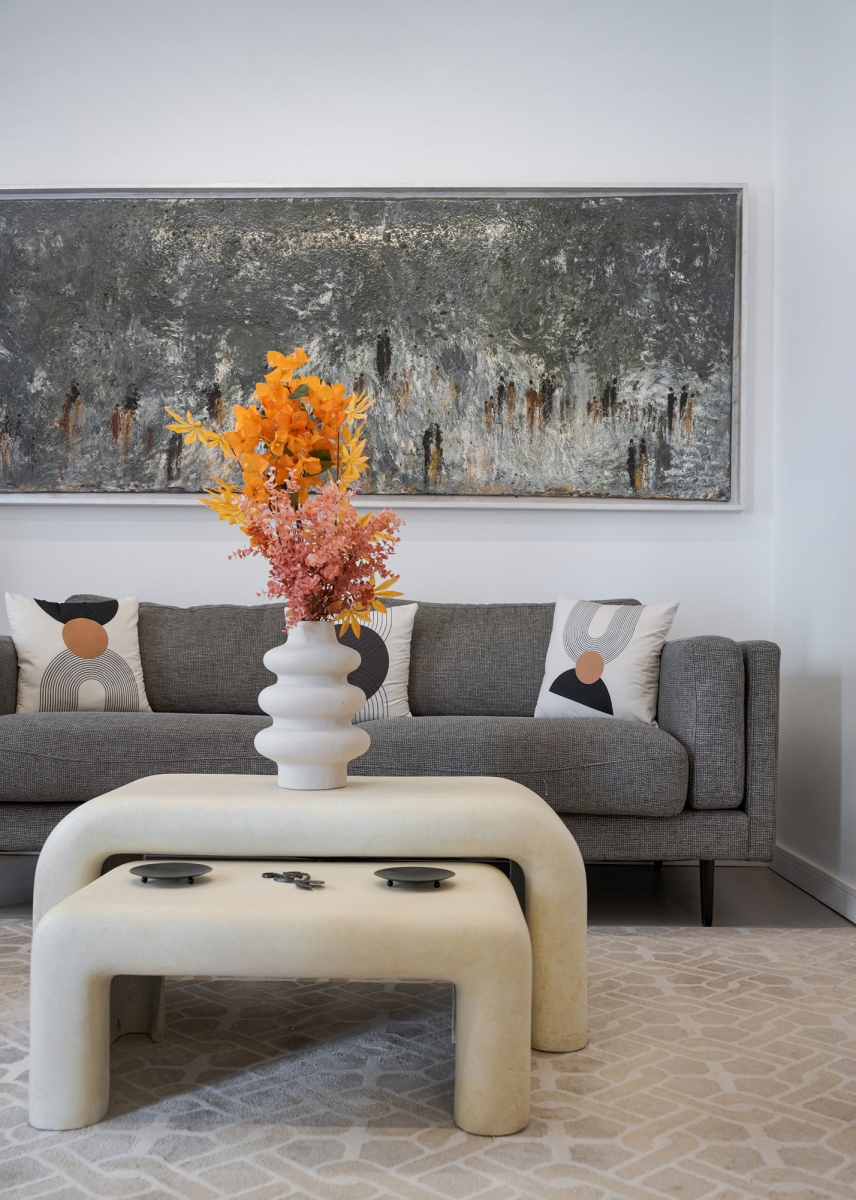 The fully equipped kitchen, artworks, and high-quality furnishings give the space character and warmth.